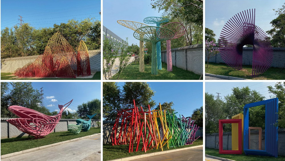 天津友發(fā)集團(tuán)-鋼管藝術(shù)長(zhǎng)廊群雕塑《綠水青山》《蒸蒸日上》《鋼管旋律》《魚(yú)之樂(lè)》《時(shí)光隧道》《任意門(mén)》